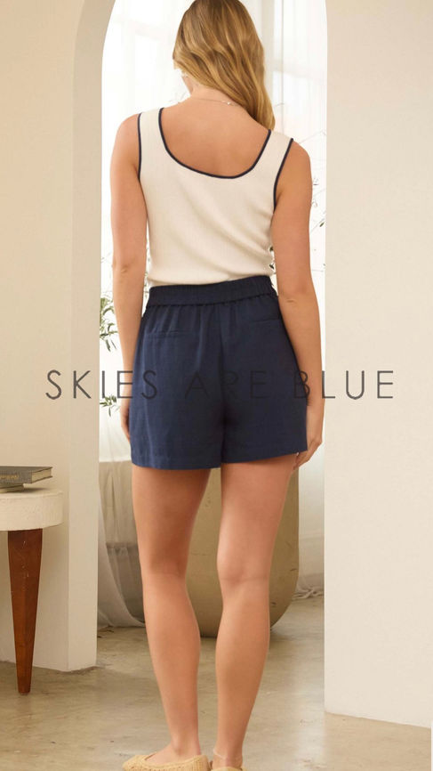 Smart, sophisticated, and endlessly versatile — these navy tailored shorts are your warm-weather power piece. Crafted from a breathable 47% rayon, 38% polyester, and 15% linen blend, they offer structure with a soft, comfortable drape. The tailored silhouette flatters while keeping the look crisp and elevated. Style with the matching blazer for a modern set moment or pair with a simple blouse for effortless polish.
